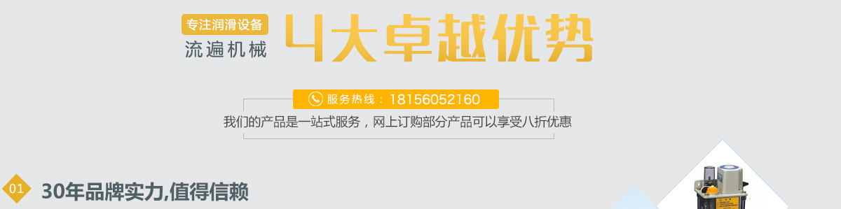 重點(diǎn)推薦:遞進(jìn)式油脂潤(rùn)滑系統(tǒng)  定量加壓式稀油潤(rùn)滑系統(tǒng)   油氣潤(rùn)滑系統(tǒng)  多點(diǎn)油脂潤(rùn)滑泵